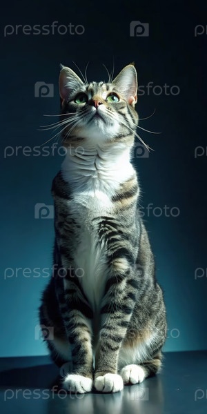 Кошка сидит прямо и смотрит в мирную обстановку