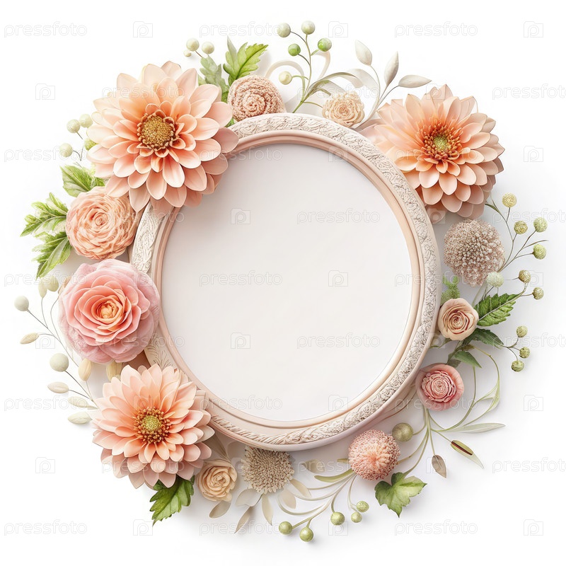 Очаровательный круглый каркас, украшенный мягкими розовыми цветами и зеленью, идеально подходит для отображения любимых моментов в уютной обстановке