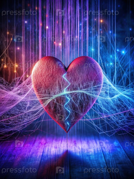 Светящаяся нить соединяет разбитое сердце в яркой, красочной сцене