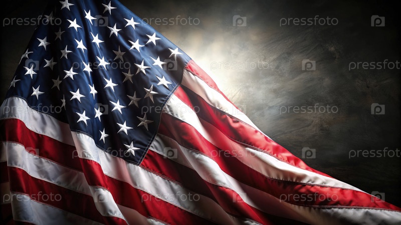 Американский флаг, отображаемый на темном фоне, подчеркивает его цвета и текстуру
