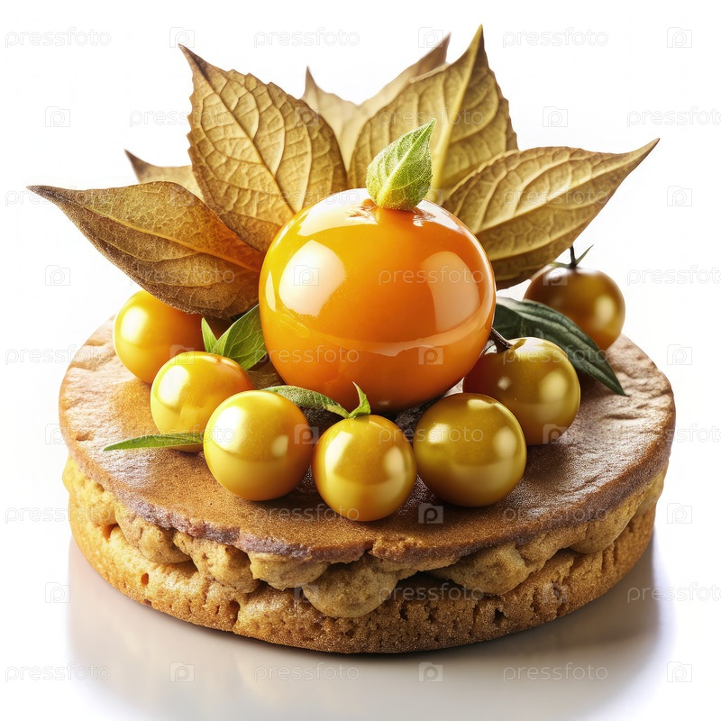 Печенье с аквамайнто и декоративными листьями на белом фоне