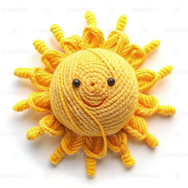 Трикотажное солнце с шариком из пряжи в центре, отображаемым на белом фоне
