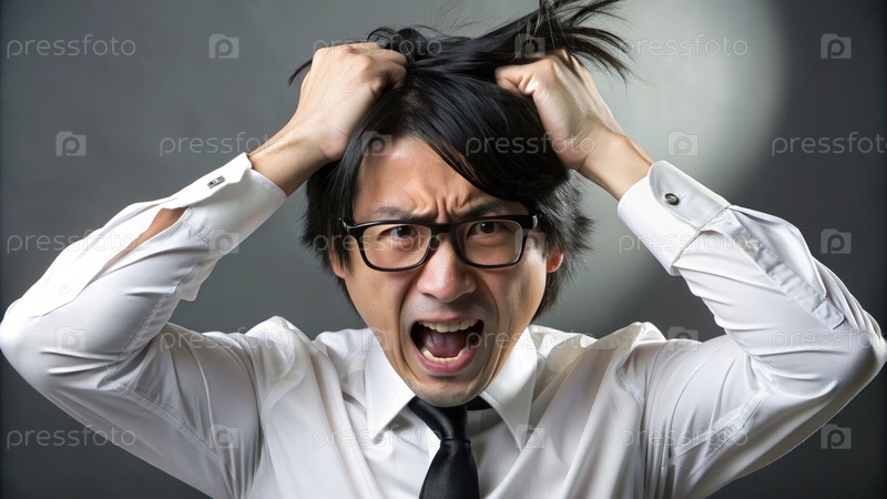Фрустрированный мужчина, выражающий беспокойство в помещении в течение дня, сжимая волосы от эмоционального потрясения