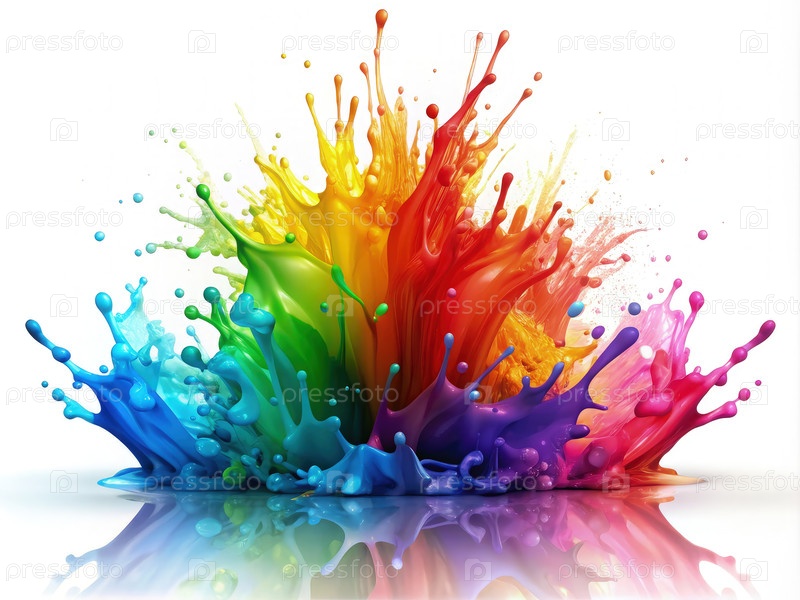 Абстрактные лучи радуги на белом фоне с яркими цветовыми всплесками. генеративный ИИ