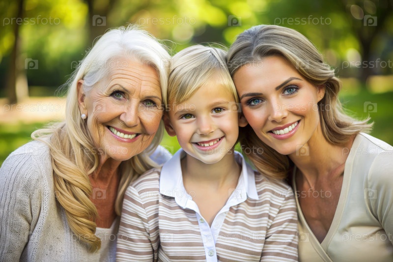 Три поколения женщин вместе наслаждаются солнечным днем в парке