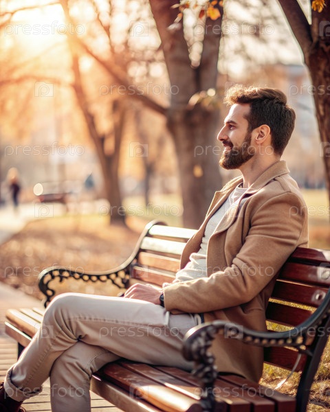 Человек наслаждается спокойным моментом на скамейке во время заката в парке