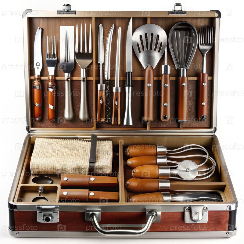 Полный набор кухонных инструментов для приготовления пищи и выпечки в компактном чехле