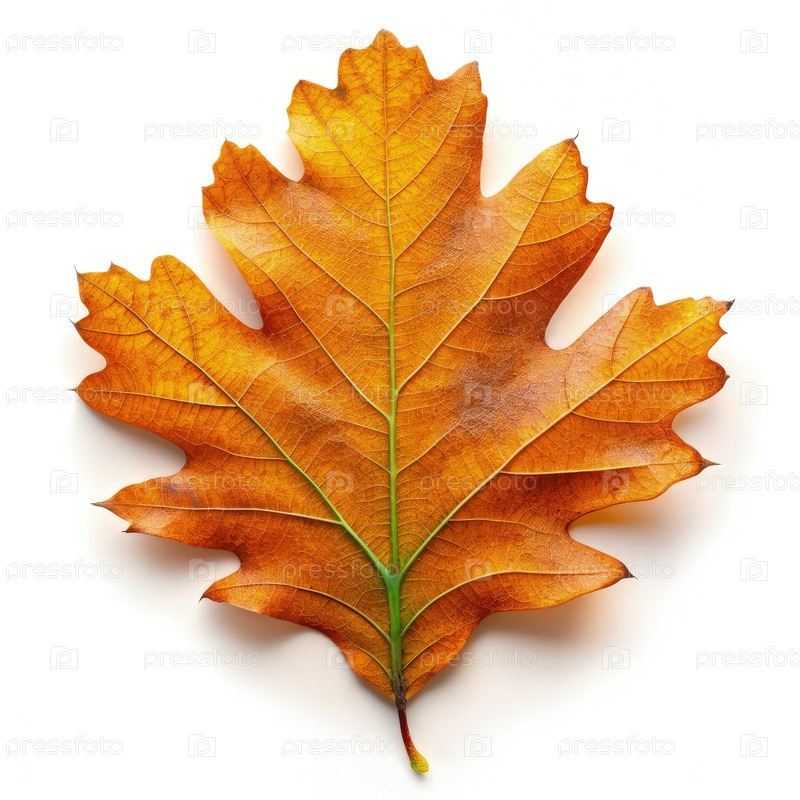 Яркий оранжевый дубовый лист, отдыхающий на белом фоне осенью
