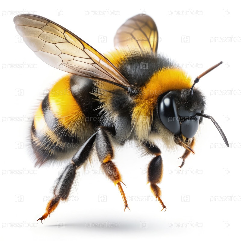 Шмель в полете на белом фоне. генеративный ИИ