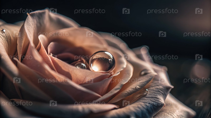 Экстремальный крупный план лепестков розовых роз, демонстрирующих деликатные капли воды