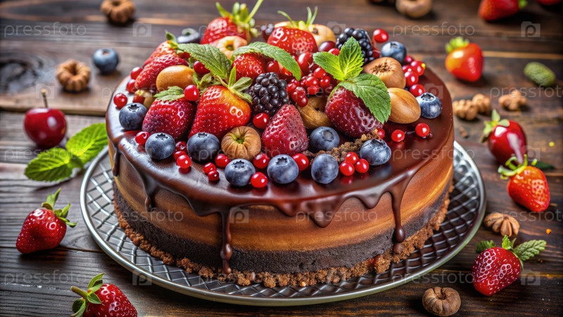 Декадентный шоколадный торт с свежими фруктами и орехами для особого случая