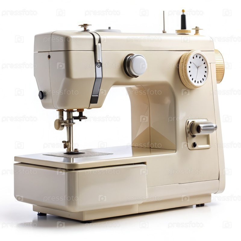 Винтажная швейная машина на рабочем столе в хорошо освещенной шитьевой комнате
