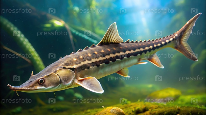 Acipenser nudiventris грациозно плавает в своей пресноводной среде обитания