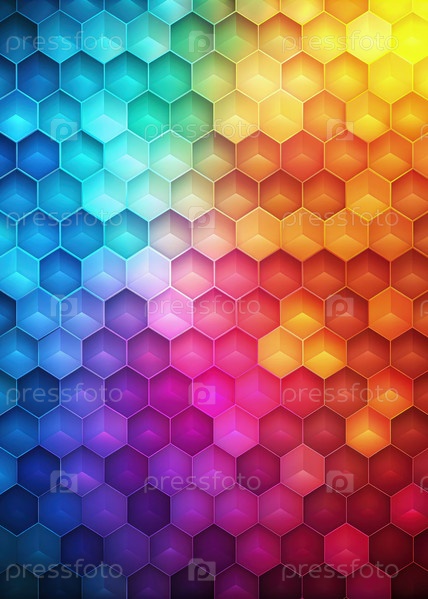 Красочные градиентные абстрактные шестиугольные формы создают яркий текстурированный фон