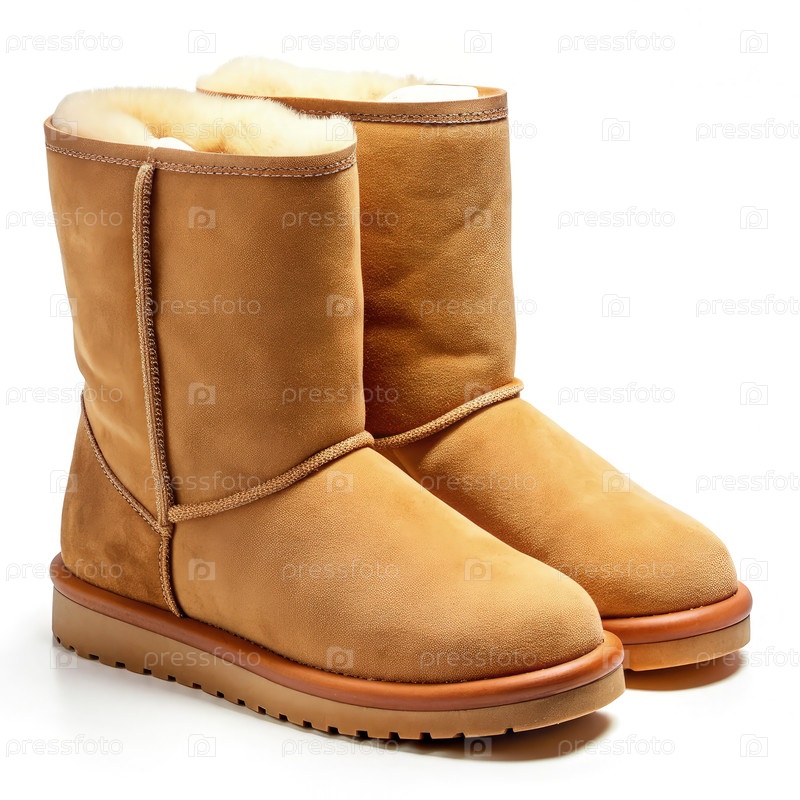Уютные коричневые ботинки на белом фоне для зимней моды