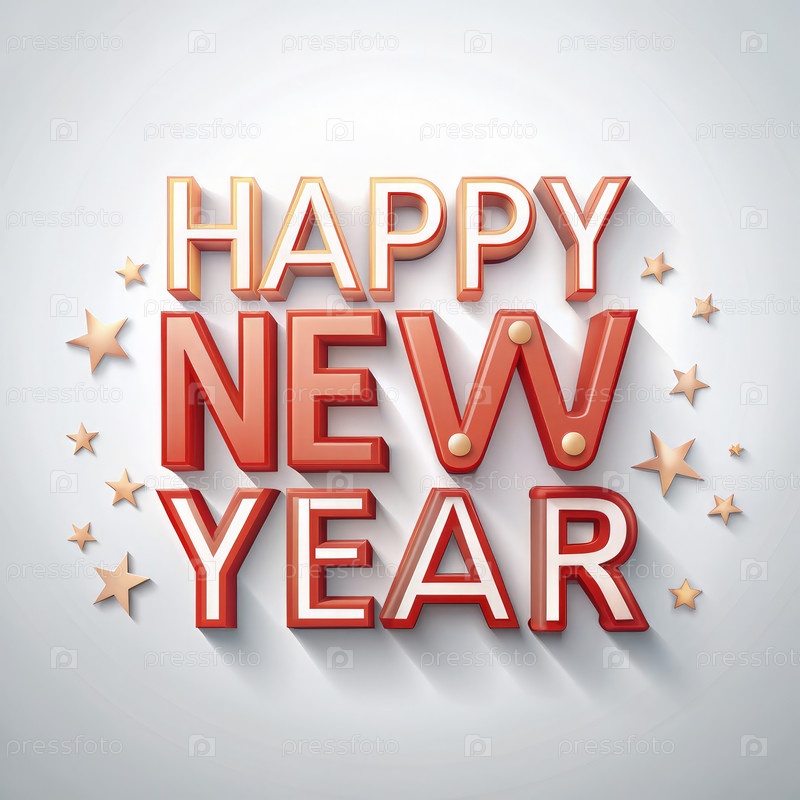 Празднование Нового года с праздничным текстом и звездами на белом фоне
