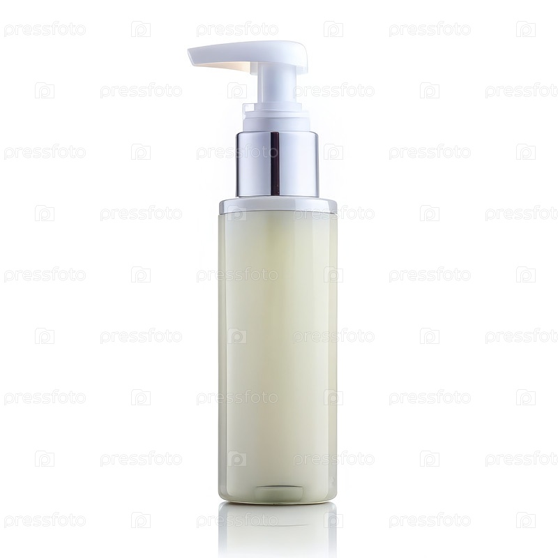 Нежный очиститель лица отображается на чистом белом фоне, демонстрируя его элегантный дизайн и насосный аппликатор для простого использования