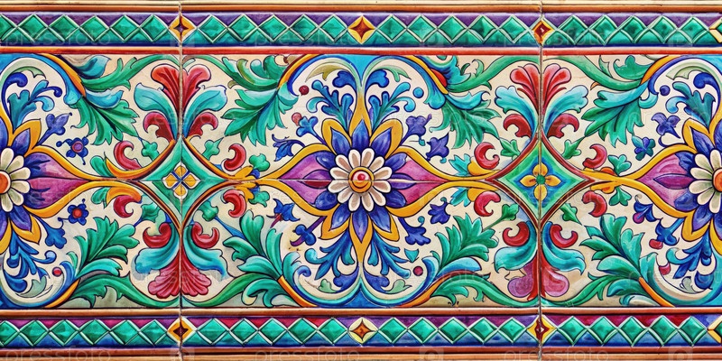 Живой итальянский керамический шаблон плитки, демонстрирующий сложные цветочные узоры в богатых цветах, подчеркивая традиционное мастерство и художественную элегантность