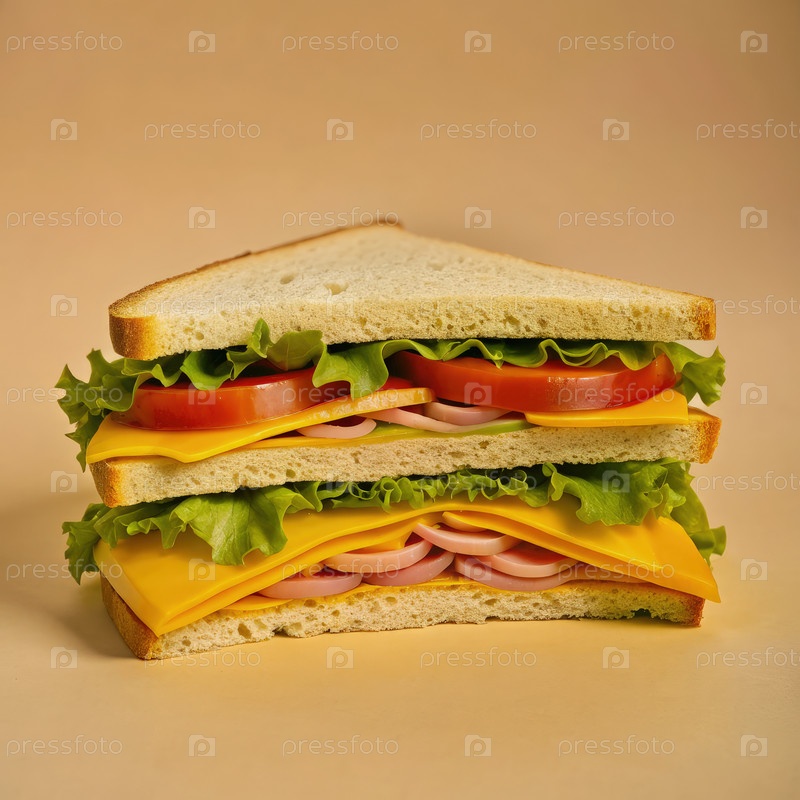 Свежеприготовленный сэндвич, наложенный слоями индейки, сыра и овощей