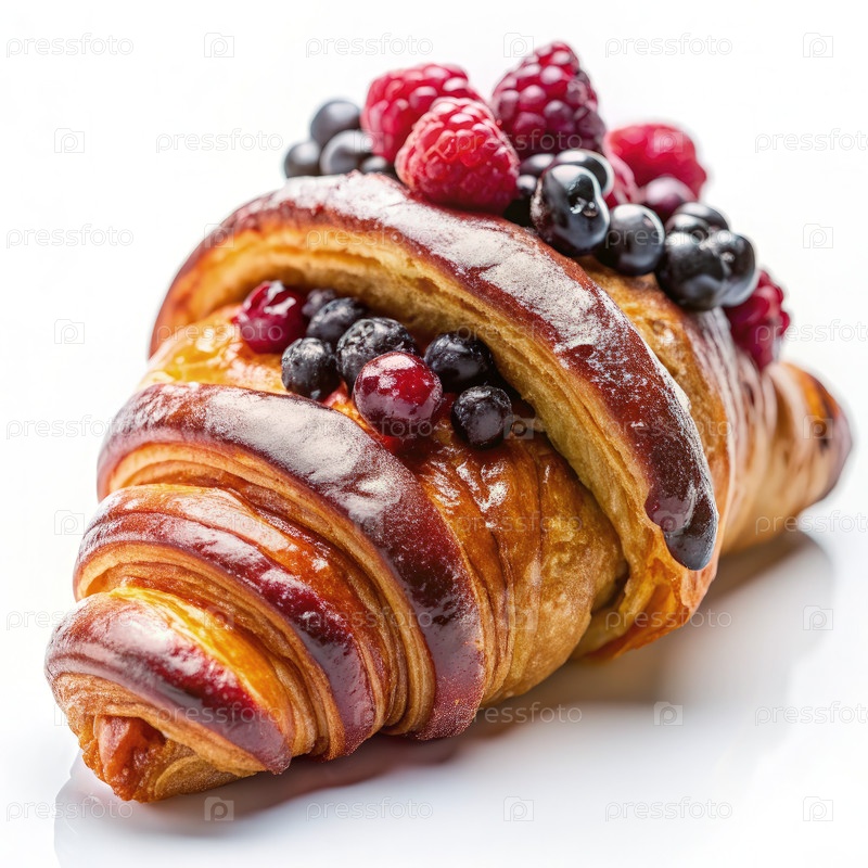 Круасан с смешанной ягодной начинкой на белом фоне