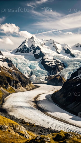 Величественный ледниковый горный пейзаж, демонстрирующий чистоту и природную красоту