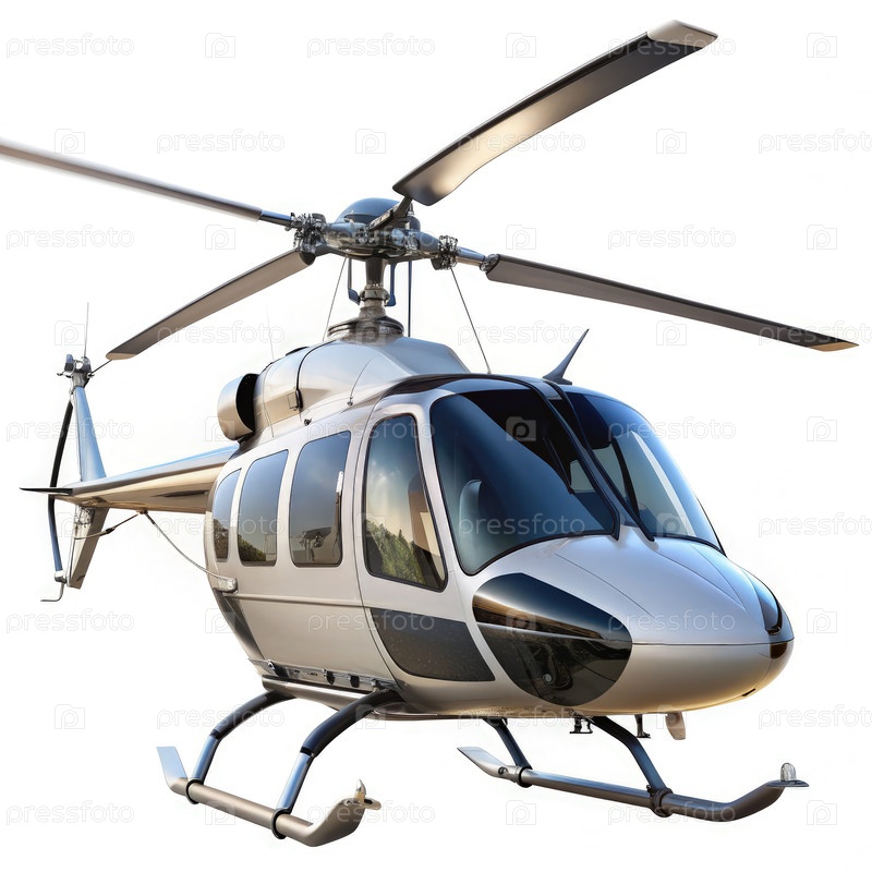Вертолет в угловом виде с изящным дизайном на белом фоне, демонстрирующий свои функции для любителей авиации и профессионалов отрасли