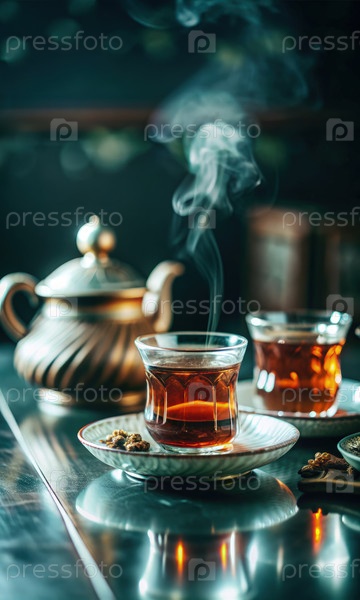 Казахский чай подается в традиционной стеклянной посуде, испаряясь в уютной обстановке