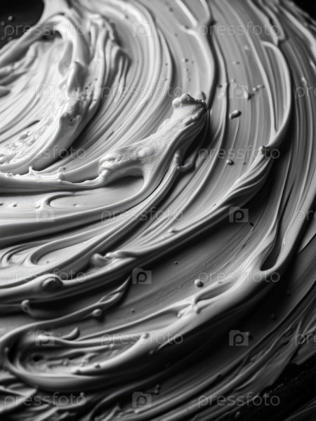 Вихри белой масляной краски на черном холсте в абстрактном дизайне