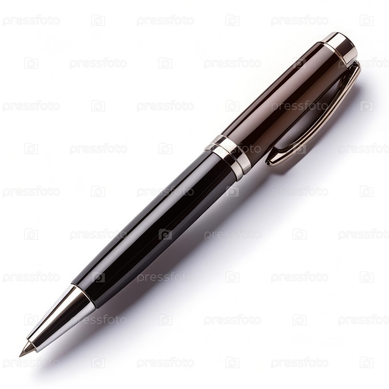 Утонченная черная шариковая ручка, опирающаяся на белый фон, готова захватить мысли или идеи во время креативного мозгового штурма