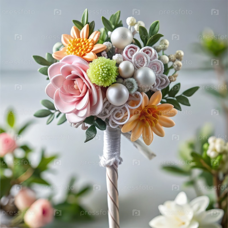 Декоративная цветочная палочка с различными цветами на белом фоне