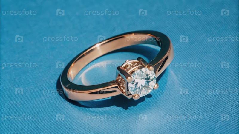 Элегантное обручальное кольцо, отображаемое на ярко-синем фоне ткани