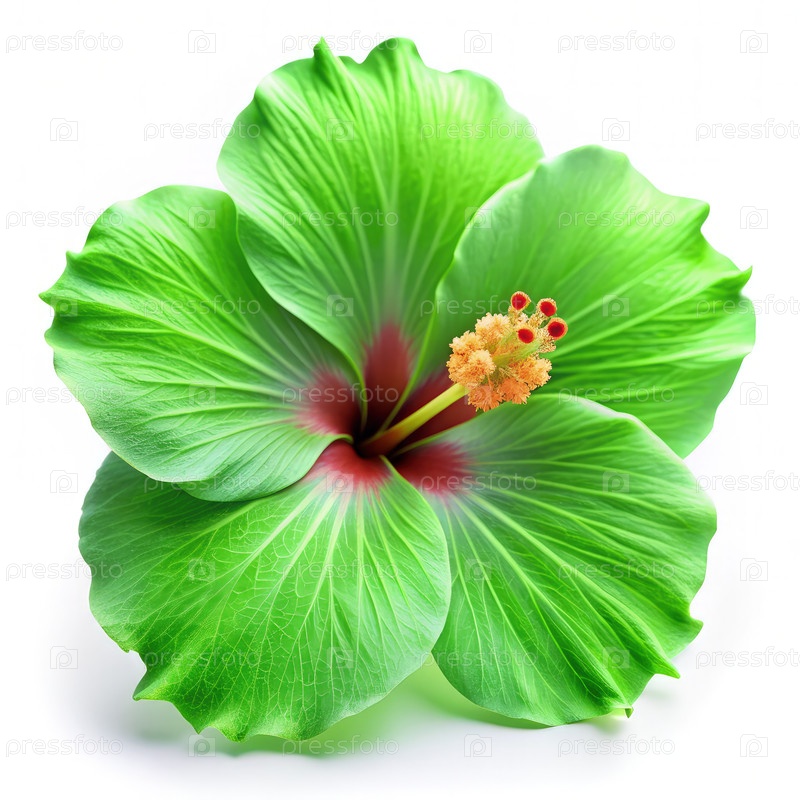 Вибрирующий зеленый цветок гибискуса показывает сложные детали на ярко-белом фоне
