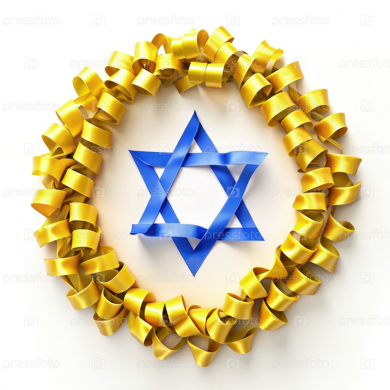Венок с желтой и синей ленточкой со звездой, символом памяти и единства