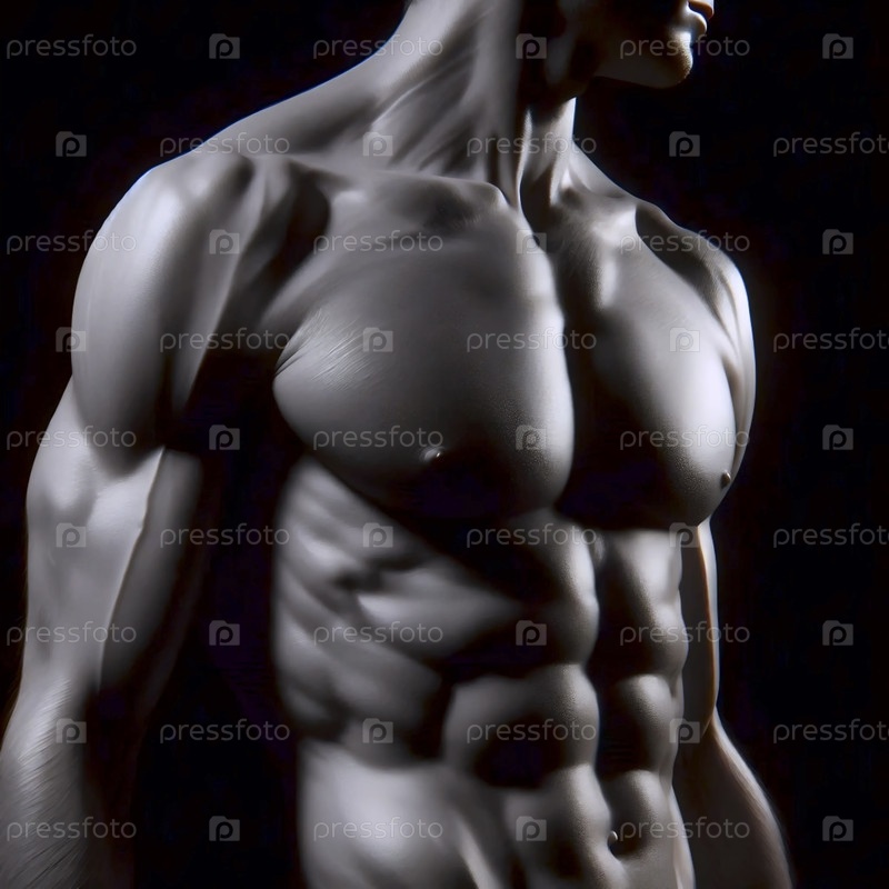 Исследование мужского туловища, освещенное как картина Караваджо, мышцы определены тенью, Ai generated image
