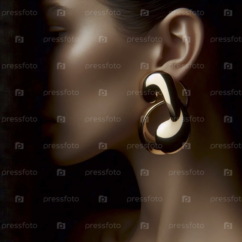 Профиль женского уха с большой, скульптурной золотой серёжкой на черном фоне Ai generated image