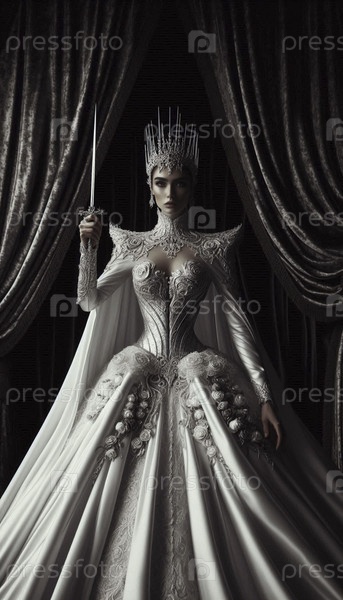 Королевская невеста в короне из искривленных серебряных и черных роз, с церемониальным кинжалом, Ай создала образ