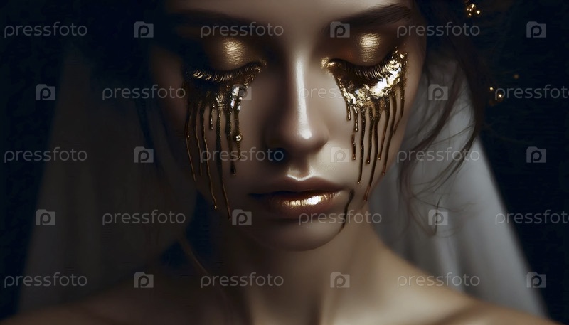 Невеста плачет слезы из жидкого золота, которые собираются и затвердевают на ее ключевых костях