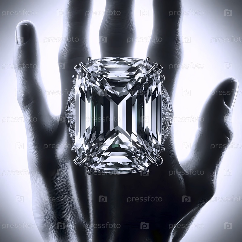 Одно массивное кольцо коктейля на пальце модели, ее рука прижата к стеклу, Ай создала изображение