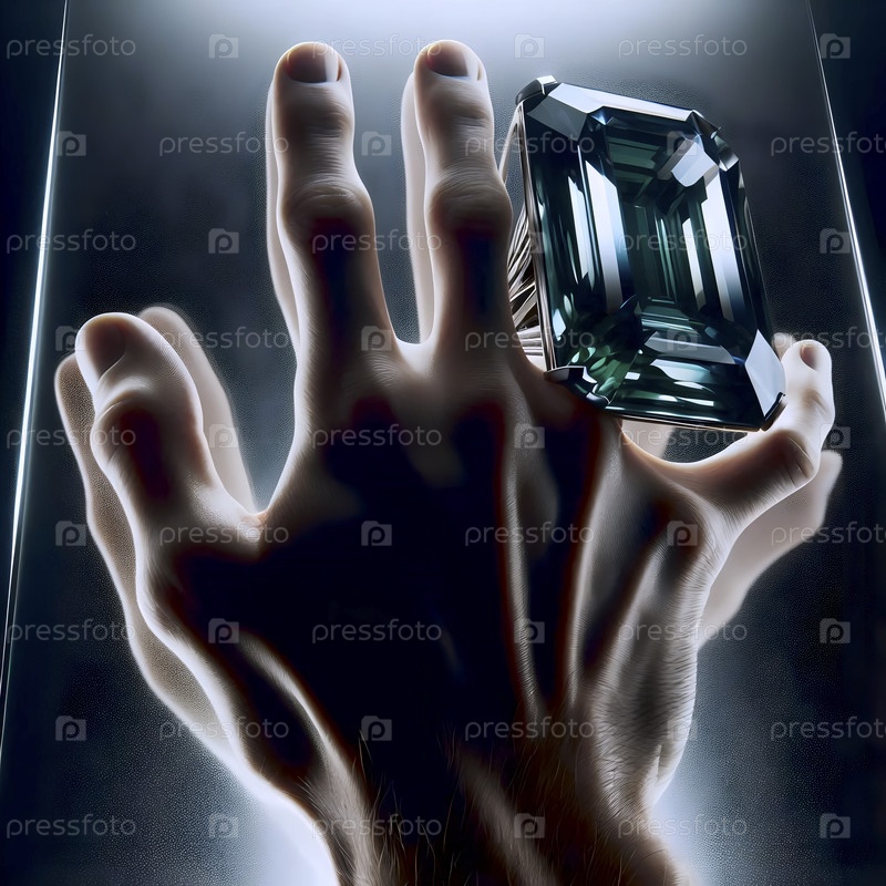Одно массивное кольцо коктейля на пальце модели, ее рука прижата к стеклу, Ай создала изображение