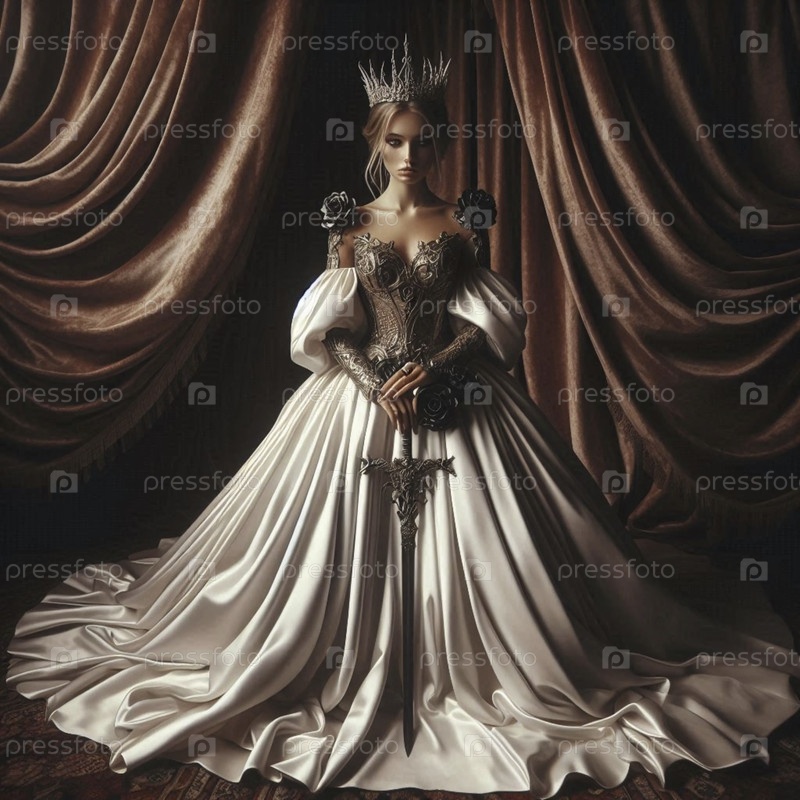 Королевская невеста в короне из искривленных серебряных и черных роз, с церемониальным кинжалом, Ай создала образ