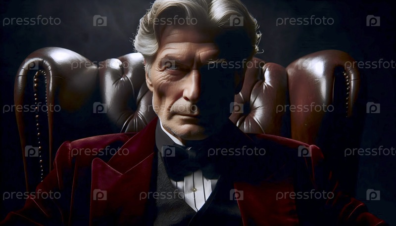 Серебряноволосый магнат в курильной куртке, смотрящий на объектив с ледяным спокойствием, Ай создал изображение