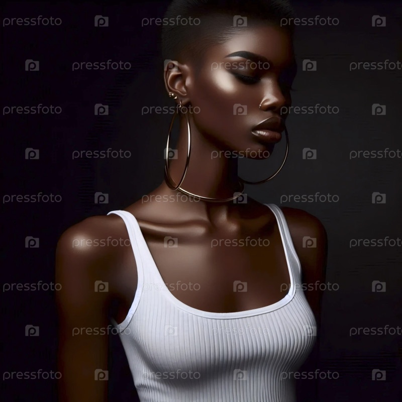 Современный певец с бледной стрижкой и обручальными серьгами, в простом танковом топе, освещение в стиле Hurrell, Ai generated image
