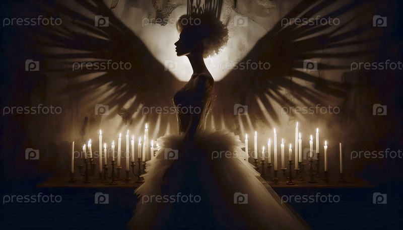 Тень невесты, брошенная свечой, превращается в чудовищно элегантную форму на стене, Ai generated image