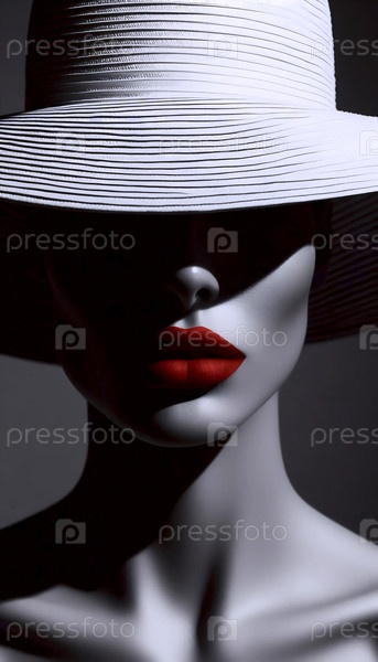 Широкошерстная шляпа, бросающая глубокую тень на лицо модели, видны только ее красные губы, Ai generated image