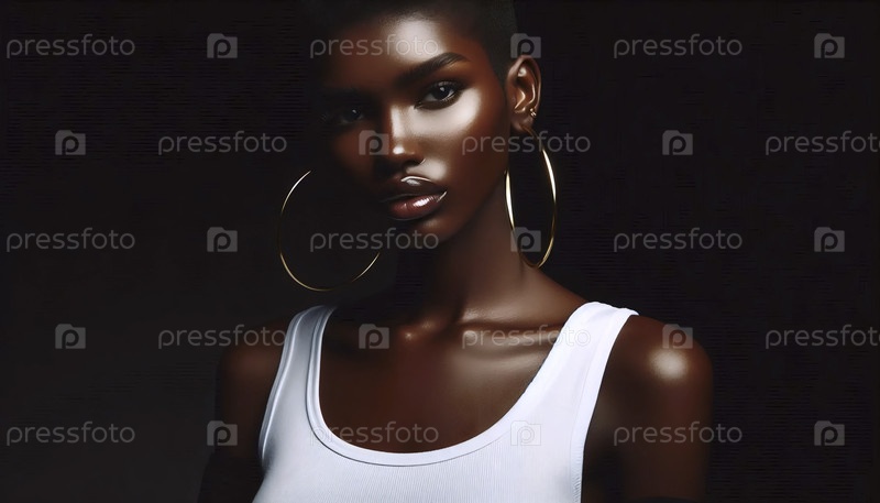 Современный певец с бледной стрижкой и обручальными серьгами, в простом танковом топе, освещение в стиле Hurrell, Ai generated image