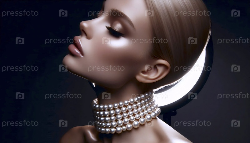 Шейка модели украшена тройной нитью из жемчуга, отвратительный взгляд, Ай создал образ