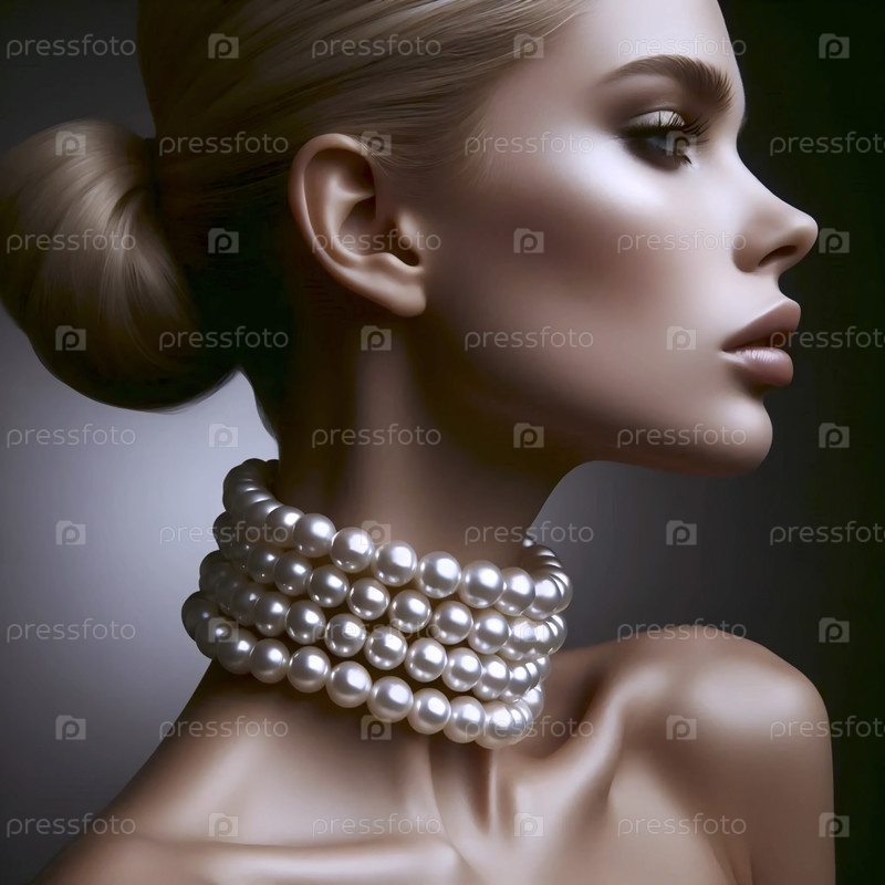Шейка модели украшена тройной нитью из жемчуга, отвратительный взгляд, Ай создал образ