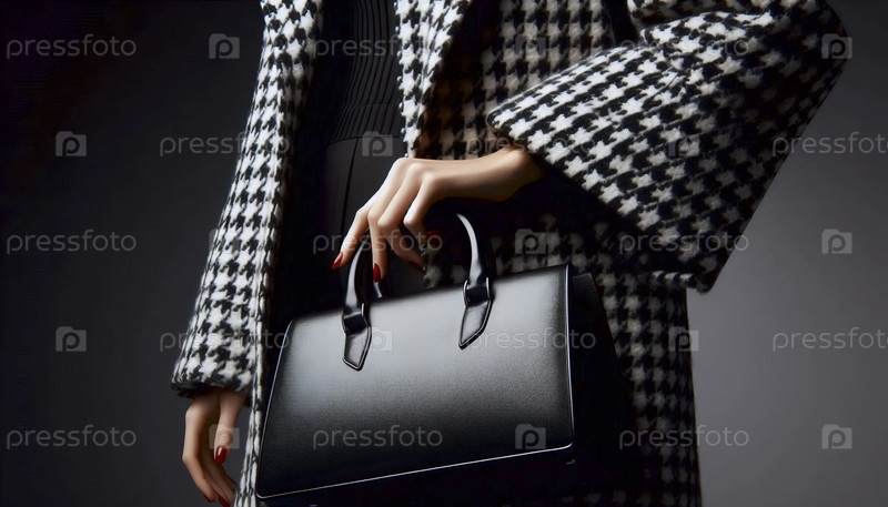 Структурированная кожаная сумочка, которую держит рука, выходящая из рукава куртки Houndstooth, Ai generated image