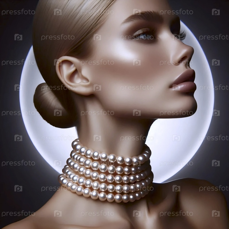 Шейка модели украшена тройной нитью из жемчуга, отвратительный взгляд, Ай создал образ