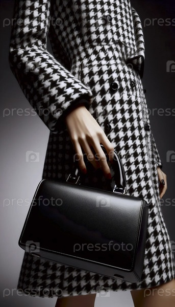 Структурированная кожаная сумочка, которую держит рука, выходящая из рукава куртки Houndstooth, Ai generated image